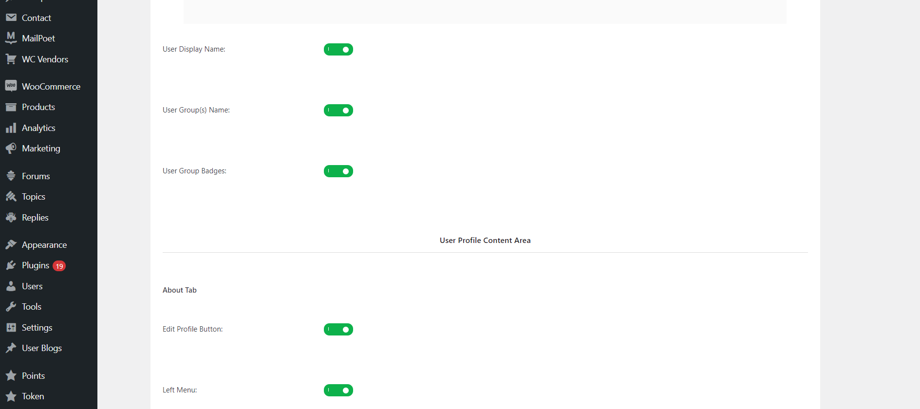 - Element Visibility: This permits the admin to hide or show elements or content on any of the dance group profiles.