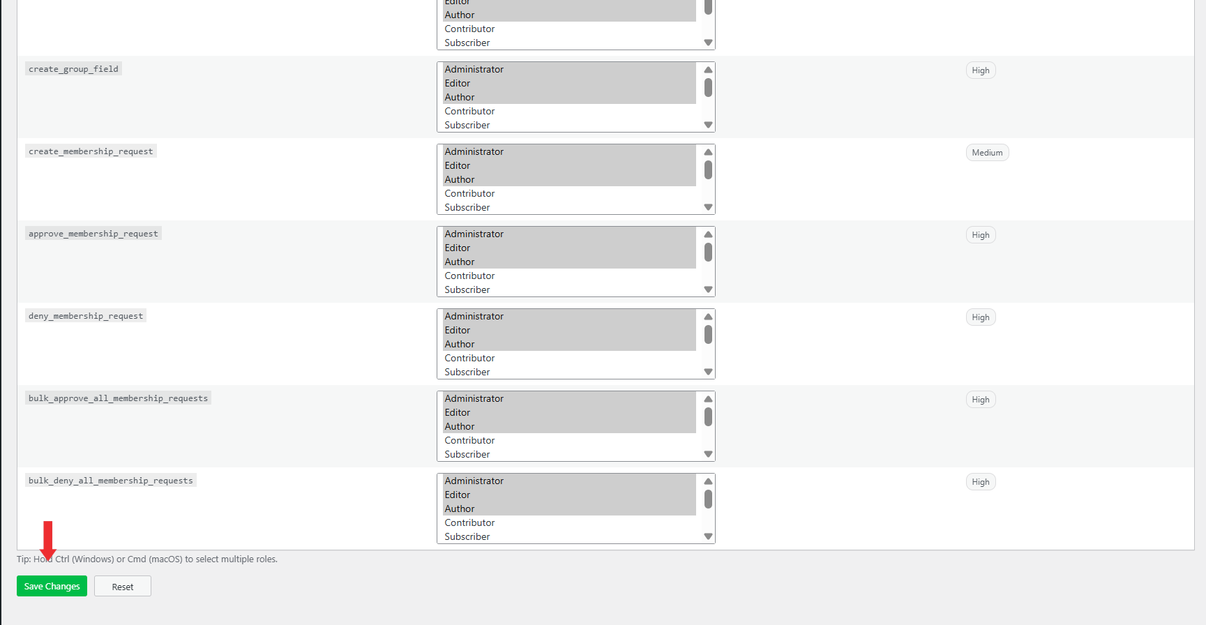 - Click the Save Changes button to apply the updated permission settings.